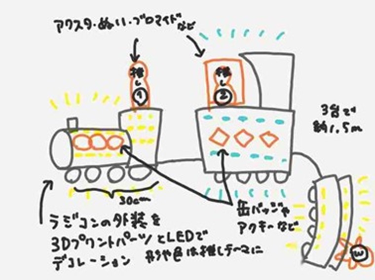 私は電子工作が好きなので、せっかくなら光らせたい。推しが輝きながら進む、エレクトリカルパレードのようなものを作ることにしました。