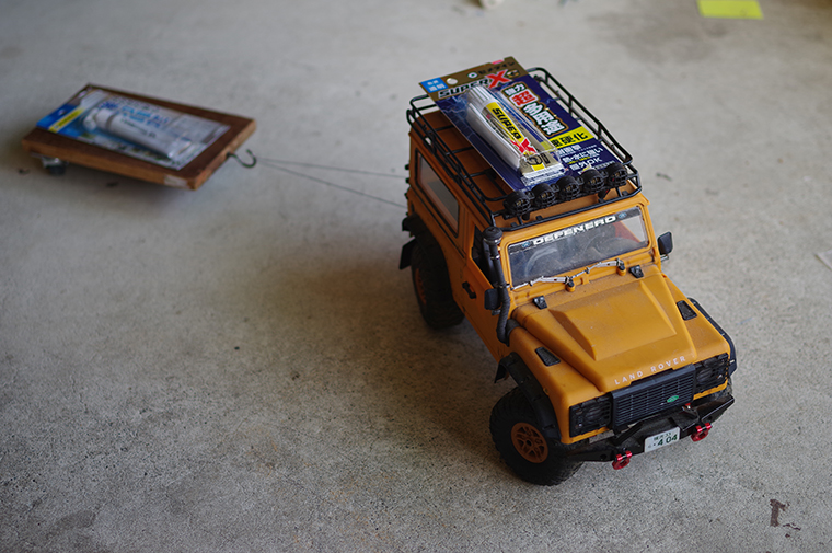 まずは本体作り。台車を作り、家でほこりを被っていたラジコンに曳かせてみました。