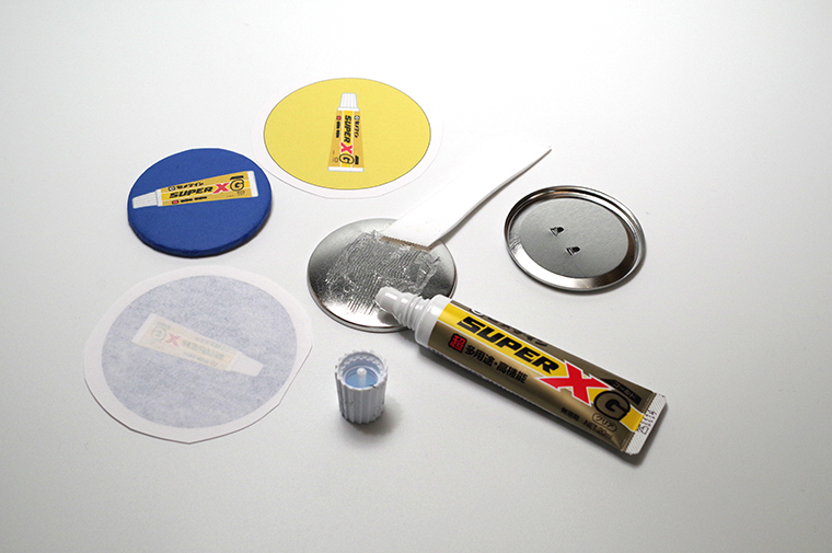 まず作るのは定番の缶バッジ。スーパーXゴールドのイラストを印刷し、100円ショップの作成キットで缶バッジに。