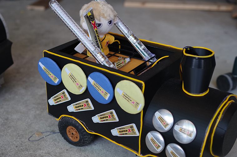 友人と歴代の推しをパレードさせたいという話で盛り上がりました。ラジコンを改造してLEDを仕込み、光って走るミニパレードを開催しました。色とりどりに光る汽車がひくのは輝くフロート。小さなパレードの先頭には、私の元祖推し接着剤「スーパーXゴールド」が鎮座し、2台目には新推しの「セメダインD」が。推し色に輝くパレードの制作記録です。