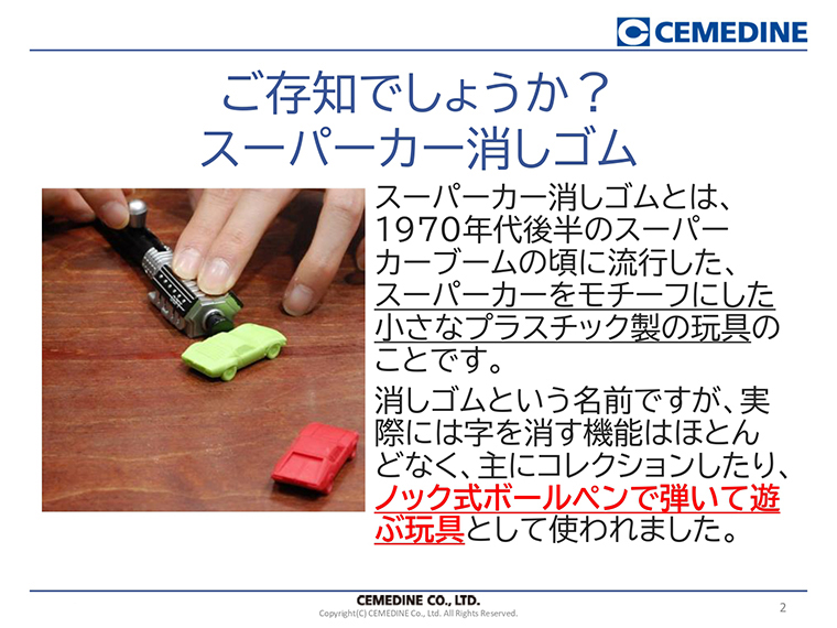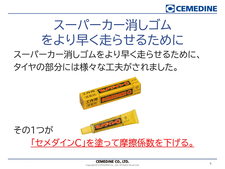 そのスーパーカー消しゴムなんですが、実はセメダインとも密接な関係があるんです。
