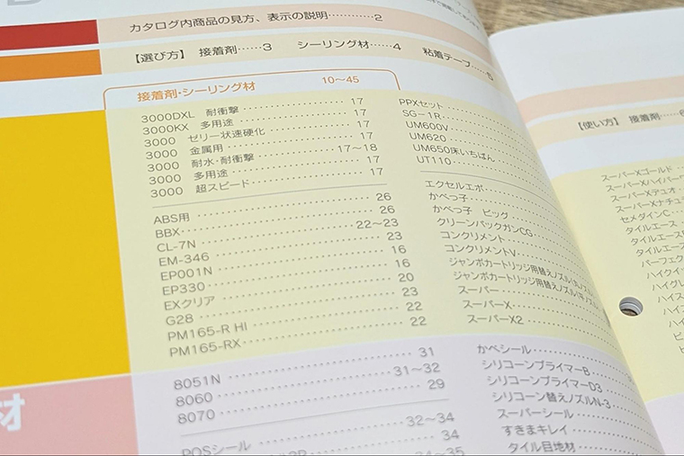 接着剤の種類が多すぎる。分厚いカタログにぎっしり乗ってやがる。もはや狂気の沙汰だ。