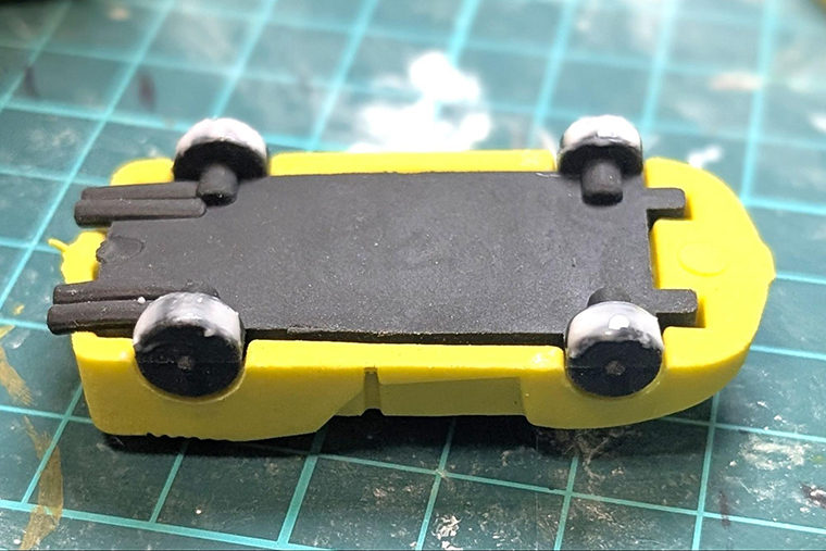 そこで、木工用接着剤を少量の水で溶いてから塗布。そうすることにより、水溶き木工用接着剤がいい感じの膜(まく)を作り、タイヤ表面を滑らかにすることに成功。